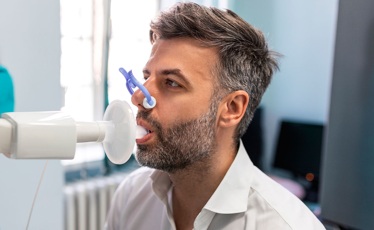 Mede a capacidade respiratória, auxiliando no diagnóstico de doenças pulmonares.